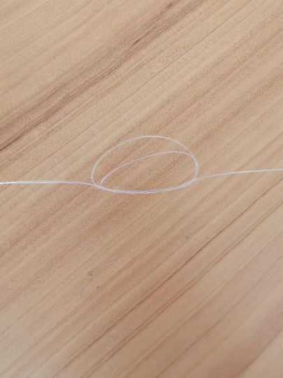 Humedezca el nudo con su saliva para facilitar el apriete y apriete el nudo tirando de ambos lados y de los dos hilos al mismo tiempo.