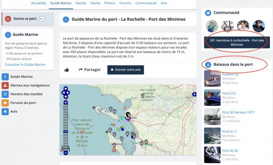 En el Yacht-Club.com Para obtener más información, acceda a más de 15.000 hojas de datos de barcos y a la guía marina de puertos deportivos. Por ejemplo, el port des Minimes de La Rochelle Con una comunidad de más de 300 miembros, hay más de 150 modelos diferentes de barcos. Intercambiar con los miembros de la comunidad en el mismo puerto, navegar en el mismo modelo de barco se convierte en un juego de niños.