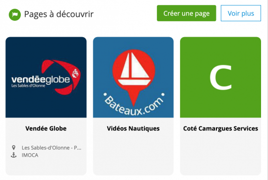 También puedes crear una página dedicada a un proyecto o una idea. ¿Estás renovando tu bateau?? ¿Planeando un voyage?? ¿Quieres compartir tu buen escales?? La Página está hecha para ti. Entonces invita a tus conocidos a seguirlo. Descubre la página SailingNews dedicado a las noticias del mundo de las carreras y regatas oceánicas o Vídeos náuticos que transmite los videos que zumban...