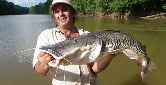 También conocido como tigre antorcha en la Guayana Francesa, el surubí tigre es un siluro que puede pesar entre 15 y 20 kg y se encuentra en la mayoría de los ríos de la Guayana Francesa. No es el único miembro de la familia de los siluros, pero sin duda es el más bello.