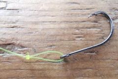 En un anzuelo de tamaño 10 con una caña corta, empieza fijando un cilindro de espuma sintética. A continuación, fija una cola de marabú en la curva. Hay muchas formas de montar piqueros. Para el cuerpo, puedes utilizar orugas o marabú atado con espumillón plateado.