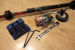 A menudo se utiliza una llave fija de 10 mm para desmontar la manivela del carrete.