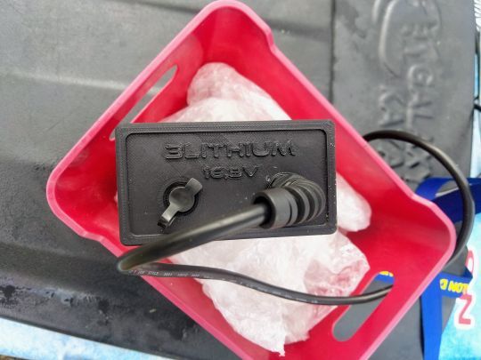 Desde hace algunas semanas, utilizo la versión Garmin de la batería 3L1 HV1607 16,8V 7A. Los cables se suministran en función del modelo de sonda, y como yo tengo una Stricker Vivid de 5 CV, mi batería viene equipada de serie con un cable de conexión Garmin. Lo mismo se puede decir de las sondas Lowrance.