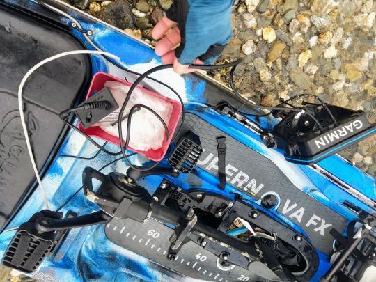 Producto bien acabado y con conectores de calidad, lo recargué tras unas doce horas de uso y la tensión era de 14,5 V, por lo que me quedaba energía de sobra. Gracias al cable de conexión suministrado, no es necesario hacer bricolaje. Basta con conectarlo directamente a la pantalla de la sonda. Esta batería es ideal para los modelos Garmin Stricker de 5" y 7". El catálogo también ofrece 3 kits completos de motorización con un motor eléctrico 3LI Advance y una batería de litio de 450 W y 12 V. Un motor eléctrico 3LI UltraPro 1CV y batería de litio 850W 16,8V. Un motor eléctrico 3LI UltraPro 3CV y batería de litio 1200V 16,8V.