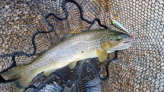Otro pasaje "mágico" está dedicado a la venta de un arroyo. En uno de sus muchos relatos, recuerda la venta de un arroyo truchero en una tienda, un arroyo vendido por medidas, vendido con truchas por supuesto, con las cascadas y las praderas vendidas por separado. Sí, Brautigan es un autor completamente "loco", y eso forma parte de su encanto. Siempre entre la realidad y la fantasía. El cóctel explosivo de Brautigan en este libro es una fina mezcla de realidad y fantasía, con un toque de humor, ironía y algunos comentarios fuera de lo común. El chiflado autor se debate entre recuerdos de infancia y alucinaciones en las que la pesca de la trucha aparece representada de diferentes maneras.