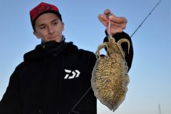 El calamar es un depredador que se alimenta principalmente de peces pequeños, como sardinas y caballas, y suele pescarse de noche para aprovechar su intensa actividad nocturna.