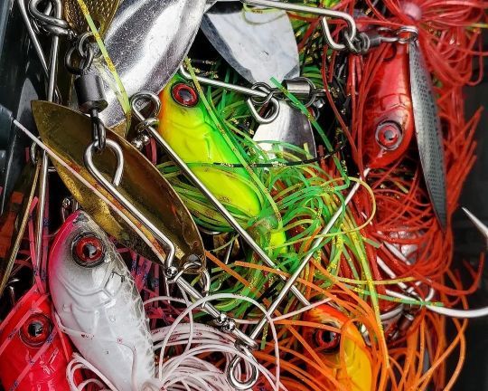 También es imprescindible contar con algunos lipless (STRIKE PRO Flapjack 90 o RIPPLE ASH Zero Arise VIB 90S) y spinnerbaits (marcas locales EPOLCRAFT o RIPPLE ASH) para pescar a mayor profundidad, especialmente en zonas de obstáculos o cerca de los bordes, cuando el uso de crankbaits es reducido. Los pesos requeridos oscilan entre 20 y 50 gramos, para bajar más o menos rápido en función de la profundidad de la zona de pesca. Deben ser robustos y estar provistos de un anzuelo muy resistente.