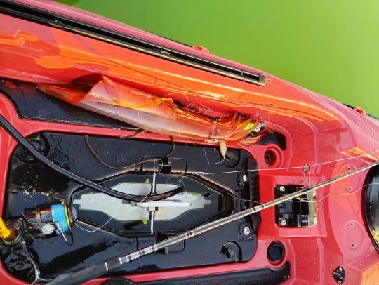 El mismo montaje, pero como el agua estaba más clara, cambié el color de los jigs a naranja. También había calamares. No grandes como el primer día, pero muchos, una veintena en menos de tres horas de pesca, con algunos dobles. Y tres sepias que no subieron al kayak. Rehice mi decoración y pegué un adorno imitación madera en el kayak. Lo muestro en el vídeo adjunto. Conseguí no hacer ni una mancha de tinta durante esta sesión, toda una proeza...