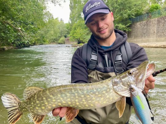 Así que volví a Westin en 2020. Pero la historia con la marca se remonta mucho más atrás. Empezó con un encuentro en el agua con Philippe Baran. Por aquel entonces dirigía un blog y yo ya le conocía virtualmente. Hicimos buenas migas y me regaló un señuelo Westin, un Ricky the roach. Este señuelo me gustó enseguida y pesqué muchos lucios con él. Luego me interesé por los demás señuelos Westin, pesqué con ellos y me gustaron mucho. He compartido algunas fotos, pero nada más.