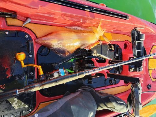 - El EGI EBI Q TR-TIPRUN: un jig bastante pesado, 28g, también diseñado para lanzar desde la orilla y que funcionó muy bien con sepias grandes.