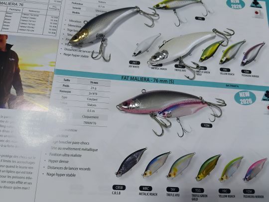 También nuevas series, especialmente de Trefle creation distribuidas por Flashmer. El 58mm Maliera y 76mm Fat Maliera son silenciosos lipless minnows para lances largos.