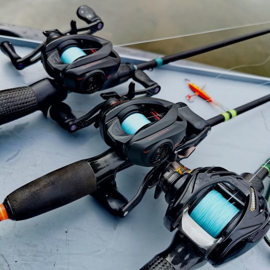 Para pescar con eficacia en powerfishing y dado el ritmo de lance necesario y el tipo de señuelos que se utilizan, es esencial contar con un conjunto de lance. Lo ideal es una caña de 10-30 g equipada con un carrete ligero con un ratio alto.
