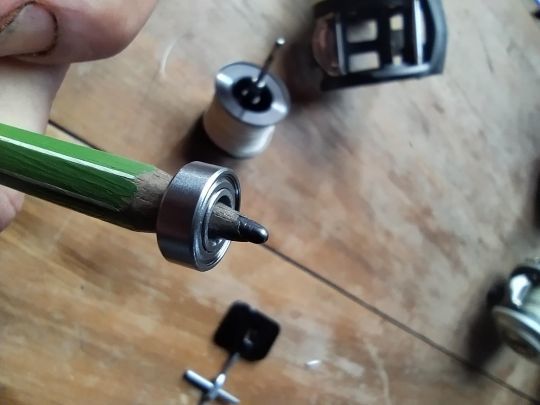 Ahora que ya sabes cómo acceder a los rodamientos, un simple lápiz de madera (de papel o de colores, por ejemplo) te permitirá comprobarlos. Colocando el rodamiento en la punta y girándolo, debería girar libremente durante varios segundos sin ningún ruido sospechoso. Así de sencillo.