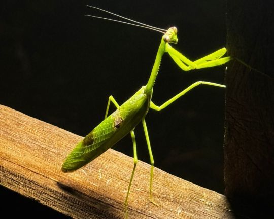 Incluso de vuelta al albergue, siempre había algo que ver, como esta magnífica foto de una mantis religiosa, un insecto fascinante. Con las patas delanteras dobladas como si rezara. Fíjate en sus grandes ojos compuestos, que le permiten detectar el más mínimo movimiento