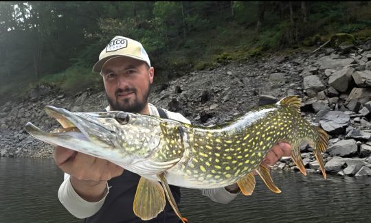 Tras una breve pausa en la adolescencia, volví al agua muy poco después de cumplir los 18 años. Mi pasión por la pesca con señuelos no hizo más que crecer. Éramos un grupo de 4 ó 5 amigos totalmente enganchados que intentábamos constantemente mejorar nuestras habilidades. La frustración del cierre de la primera categoría en septiembre fue tan grande que tuvimos que buscar una solución. Rápidamente recurrimos a la pesca de carnívoros en los embalses de la región para alargar la temporada. La pesca del lucio en las orillas y la pesca vertical del lucio-perca. Gracias a una normativa específica, tenemos la suerte de poder pescar con señuelos 12 meses de cada 12.
