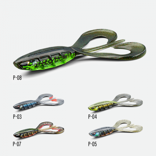 El Nays TWN es un softbait radical para acechar ejemplares récord. Desarrollado en Berlín por Nays, este grub doble se basa en una silueta masiva para desencadenar la agresividad de los peces. Su diseño de doble cola genera fuertes ondas de presión que pueden ser percibidas a distancia por la línea lateral de los depredadores. Su amplia silueta garantiza la máxima visibilidad en aguas agitadas. En cuanto a especificaciones, el tamaño 60 tiene 15,2 cm para 34 g, el tamaño 80 ofrece 20,3 cm para 74 g y la versión 100 alcanza los 25,4 cm para 142 g. Este señuelo es ideal para usarlo con un anzuelo Texas para sobrevolar las malezas o con el nuevo Shallow Cruiser Rig de Bim Tackle. Cada señuelo tiene un acabado pintado a mano en 8 colores, diseñado sin plastificantes nocivos.